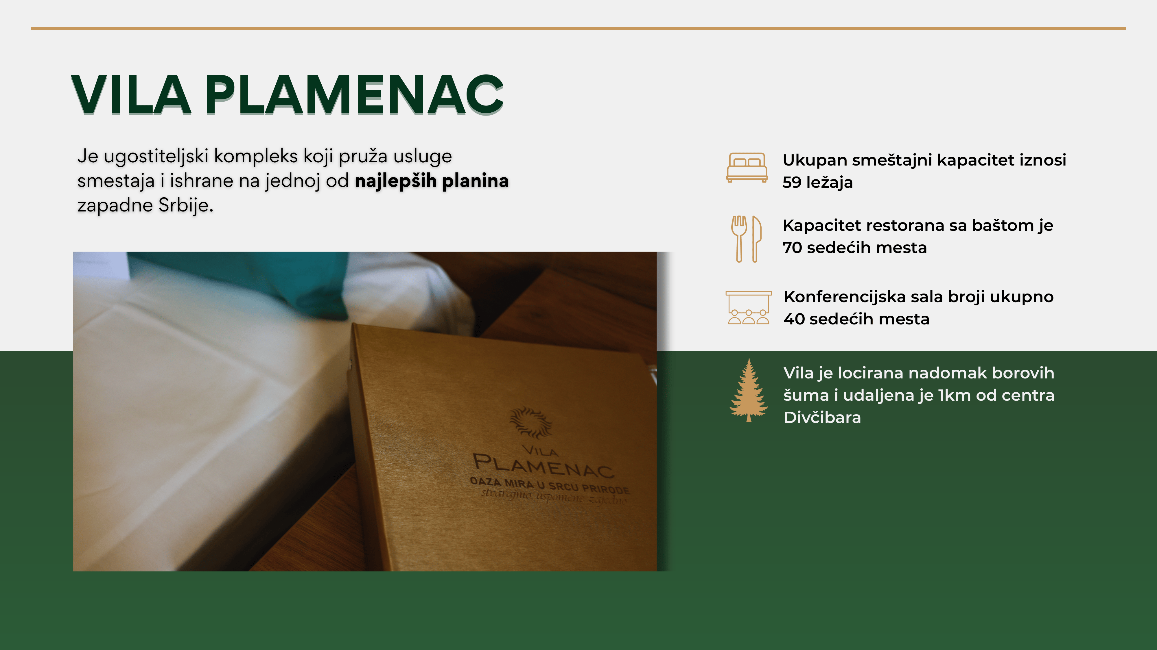 Vila Plamenac je ugostiteljski kompleks koji pruža usluge smeštaja i ishrane na jednoj od najlepših planina zapadne Srbije.